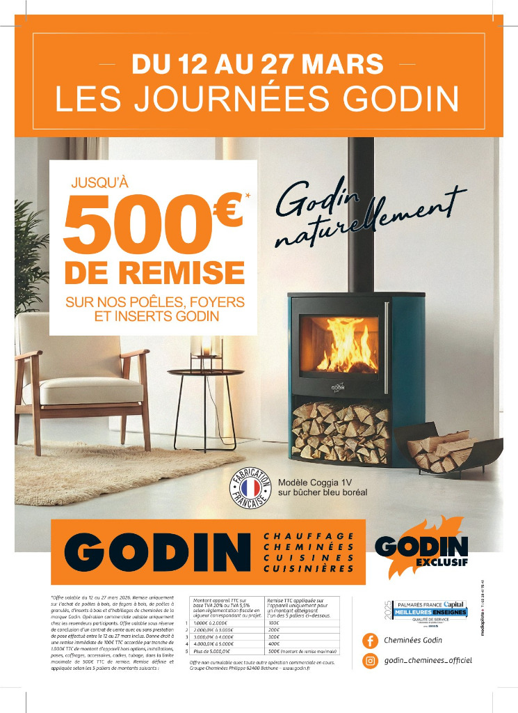 Les "Feux de Serris" concessionnaire exclusif Godin, une équipe de professionnels reconnue depuis 1993 vous propose de découvrir son showroom de 150 m² d'exposition : Une gamme qui conjugue : patrimoine et innovation, fiabilité, fonte, performance et longévité.
